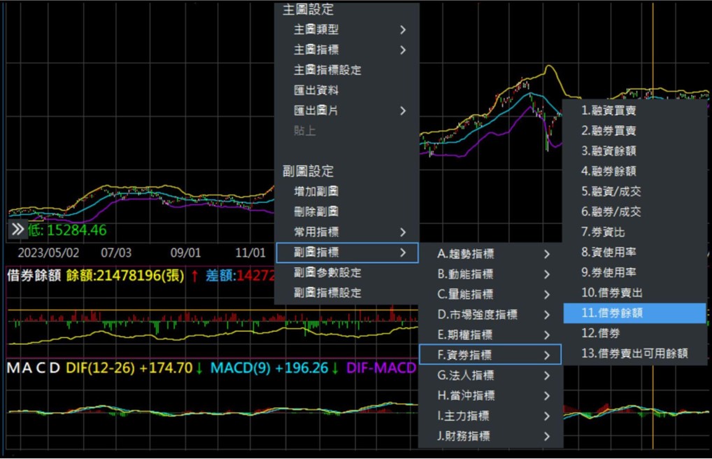 可以利用下單系統的副圖,查詢出來目前法人、大戶借券餘額