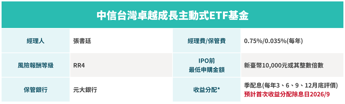 ◈中國信託台灣卓越成長主動式ETF(00995A)特點