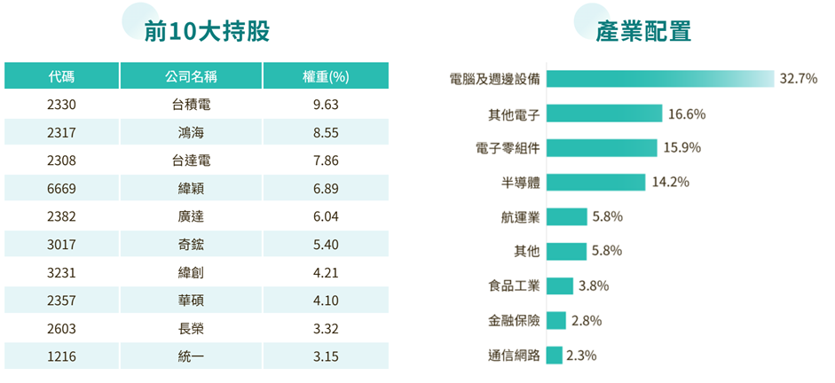 ◈中國信託台灣卓越成長主動式ETF(00995A)成分股和產業分布