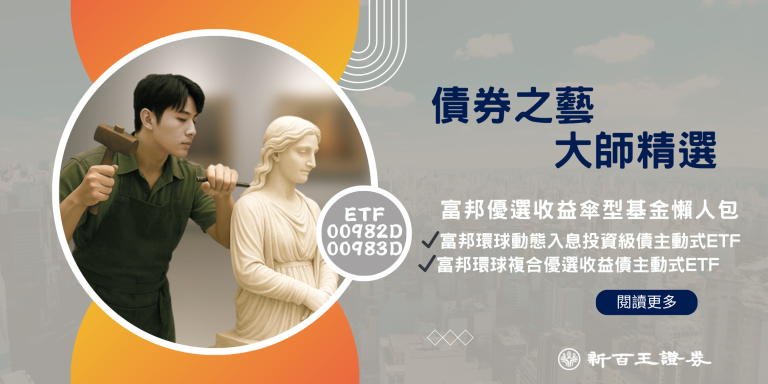 富邦投信於 2025 年 10 月推出全新主動式債券ETF系列——00982D 富邦優選收益債、00983D 富邦環球複合優選收益債。這兩檔ETF同屬「富邦優選收益傘型證券投資信託基金」,由專業債券團隊主動調整投資組合,以增加債息收入機會為投資目標。